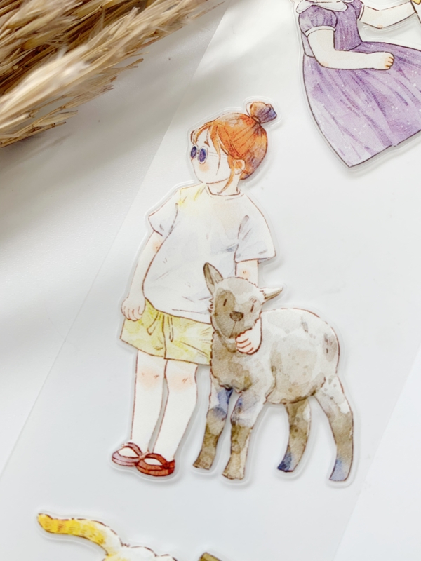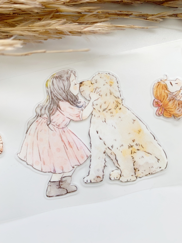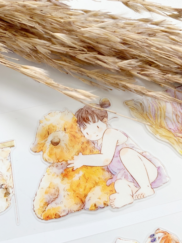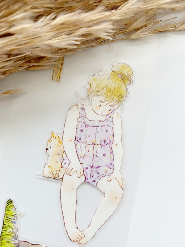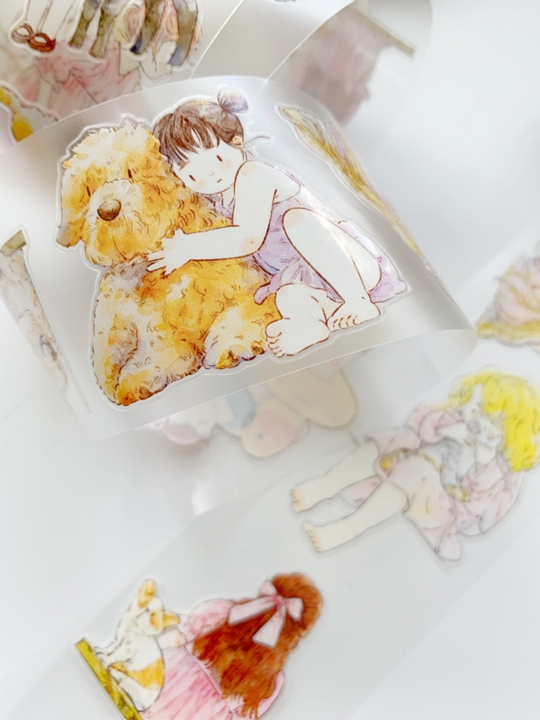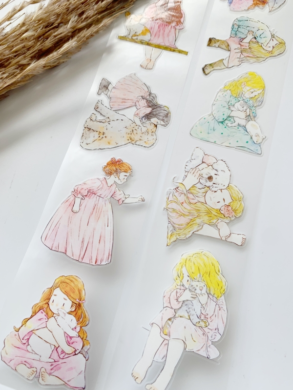 Een prachtige sample Pre-cut Pet tape van het merk DING.DING. Op deze sample zitten veel stickertjes, dus je hoeft de afbeelding niet uit te knippen! Dit tape is van hoge kwaliteit en de kleuren zijn prachtig. Erg leuk om in je journal te gebruiken.