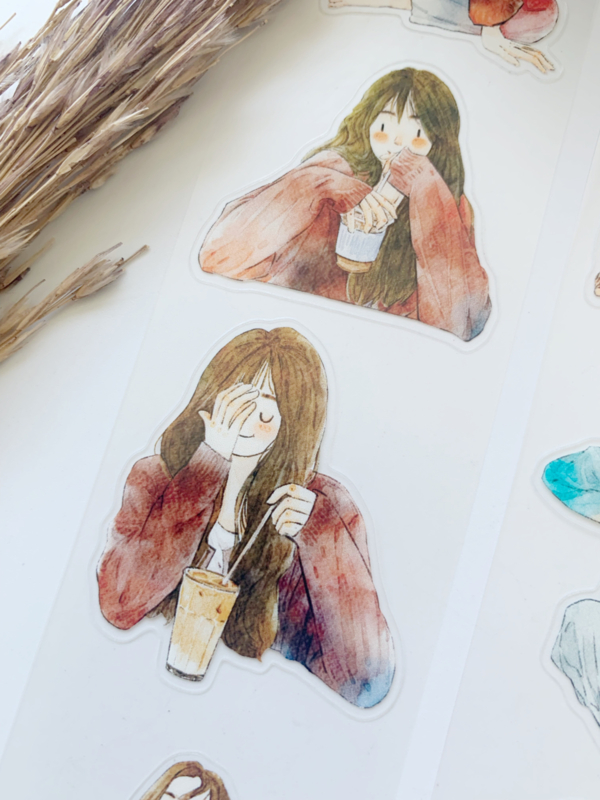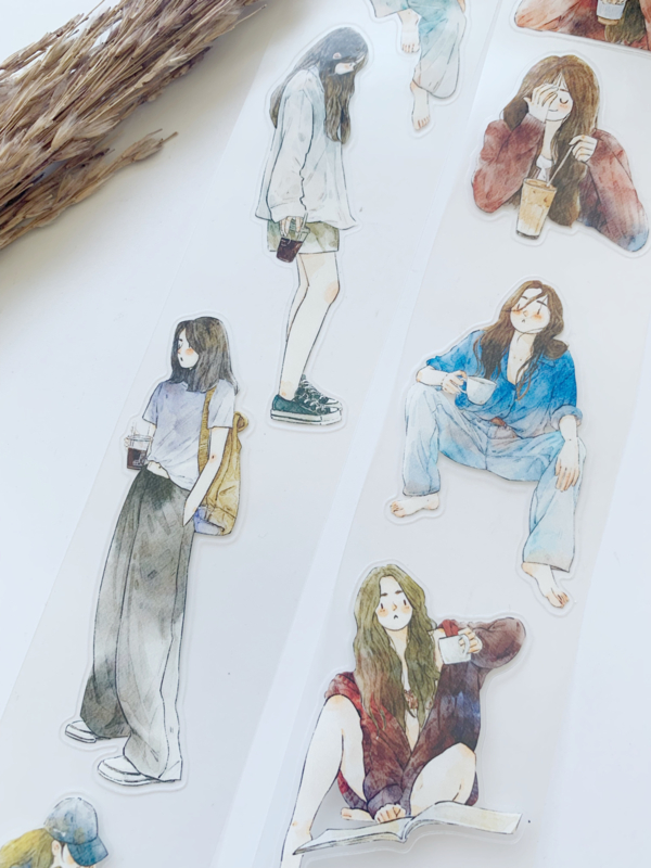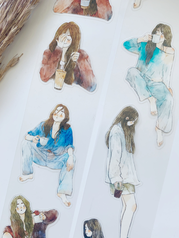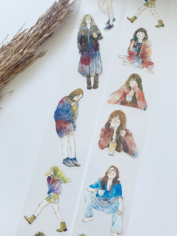 Een prachtige sample Pre-cut Pet tape van het merk DING.DING. Op deze sample zitten veel stickertjes, dus je hoeft de afbeelding niet uit te knippen! Dit tape is van hoge kwaliteit en de kleuren zijn prachtig. Erg leuk om in je journal te gebruiken.