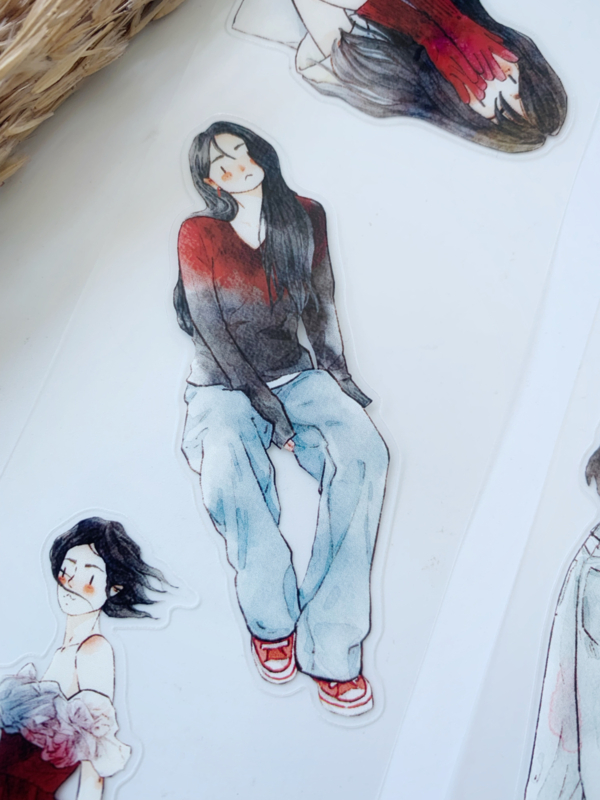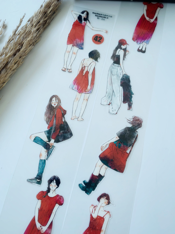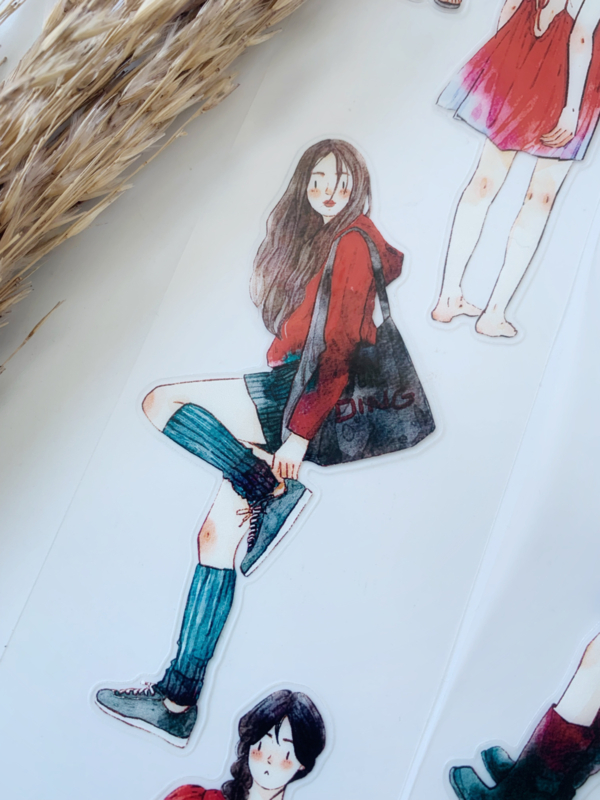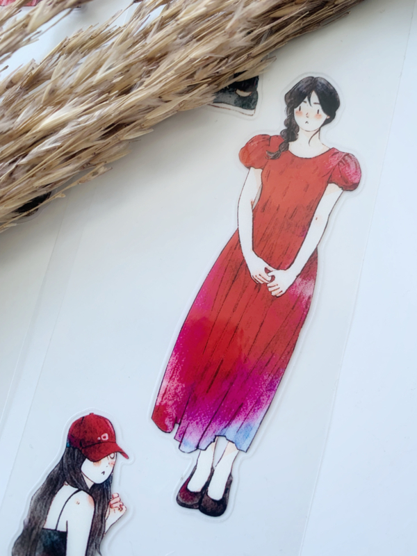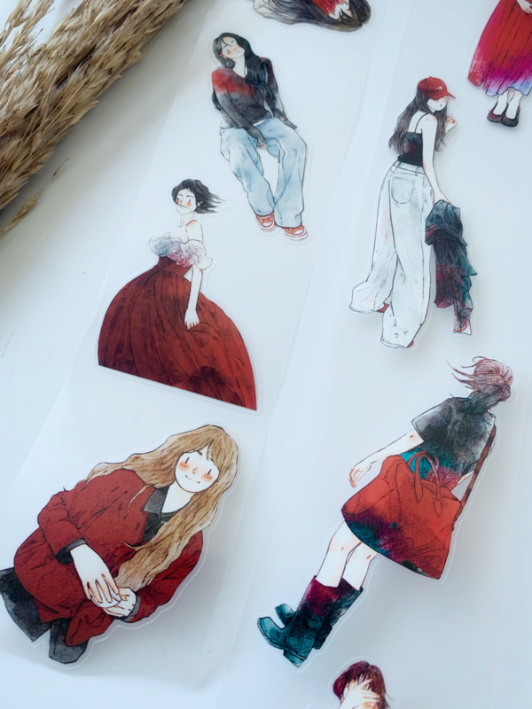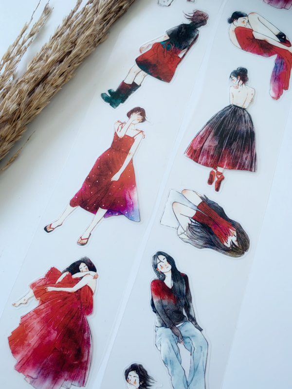 Een prachtige sample Pre-cut Pet tape van het merk DING.DING. Op deze sample zitten veel stickertjes, dus je hoeft de afbeelding niet uit te knippen! Dit tape is van hoge kwaliteit en de kleuren zijn prachtig. Erg leuk om in je journal te gebruiken.