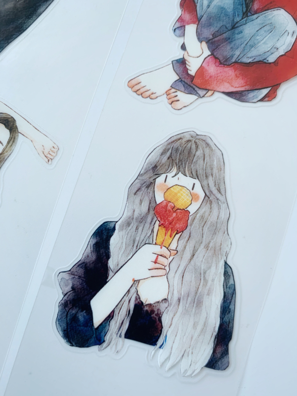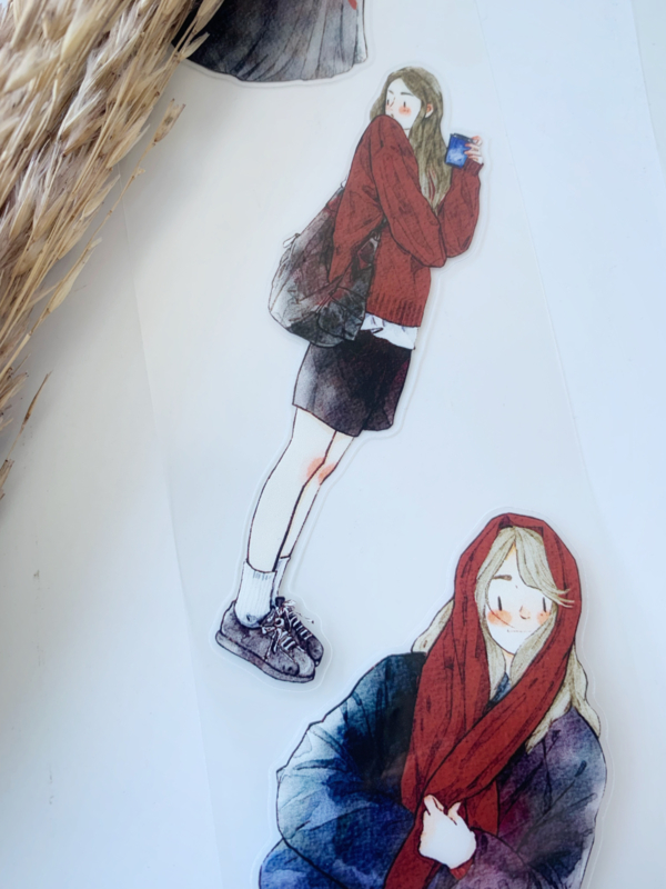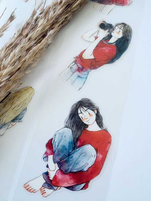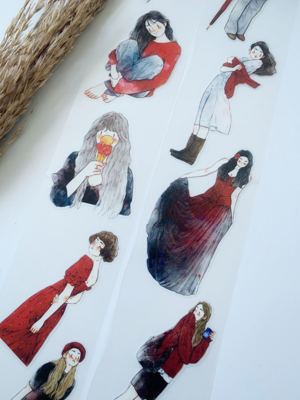 Een prachtige sample Pre-cut Pet tape van het merk DING.DING. Op deze sample zitten veel stickertjes, dus je hoeft de afbeelding niet uit te knippen! Dit tape is van hoge kwaliteit en de kleuren zijn prachtig. Erg leuk om in je journal te gebruiken.