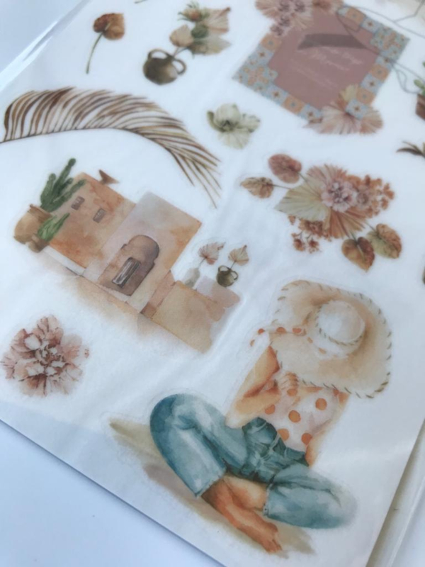 Een leuk pakketje vol met Print-on stickers van het merk MU. De stickers zijn van hoogwaardige kwaliteit en erg mooi om te verwerken in je journal. Door de schaduwen die gebruikt zijn bij de stickers lijkt het levensecht. De stickers komen het beste uit op een lichte achtergrond. Het is handig om het stokje te gebruiken bij het opwrijven van de stickers. Zo ontstaan er geen kreukels en hecht de sticker mooi aan de ondergrond.