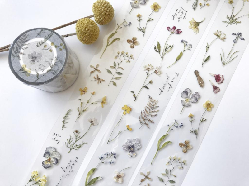 Prachtig tape van het merk Pion. Erg leuk om in je journal te gebruiken, de mogelijkheden zijn eindeloos. Je kunt de bloemetjes uitknippen en verwerken in een pagina.