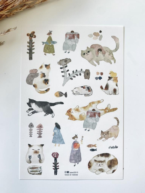 Een prachtig setje stickers van het merk Pion. Het design heet: Cat Girl. Let op! Dit zijn geen rub-on stickers, maar gewone stickers. Gemakkelijk los te halen en in je journal te verwerken. Het pakketje bestaat uit twee stickervellen.