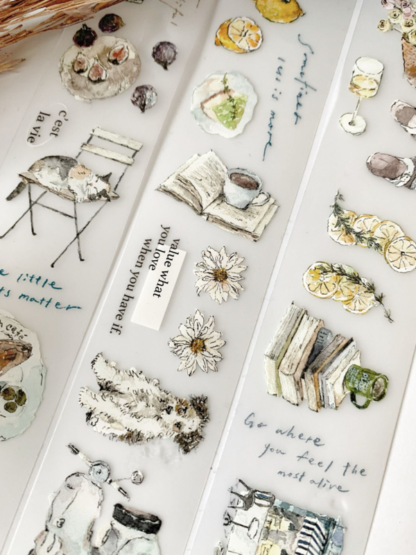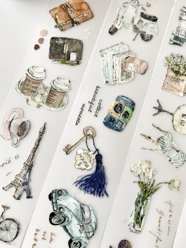 Pion - Sticky Note Hele RolEen prachtige, nieuwe rol van het merk Pion. Op dit design zitten allerlei stickers, die je kunt gebruiken in je journal. Het tape is 4.5cm breed en 5 meter lang. Dit design is niet verkrijgbaar als sample.