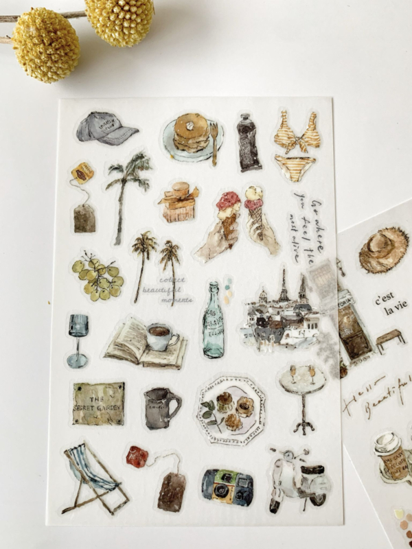 Een prachtig pakketje met drie stickervellen van het merk Pion. De stickers zijn rub-on stickers, je hebt een wrijfstokje nodig om ze perfect aan de onderkant te laten hechten. Erg leuk om te gebruiken in je journal!