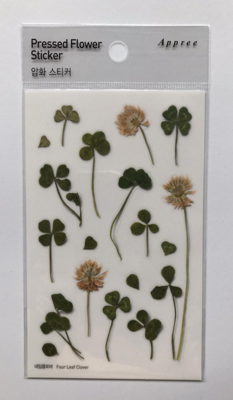 A sheet of transparent stickers contains images of pressed flowers. The images are lifelike and because shadow has been added, it looks like you are adding a real pressed flower to your work.
