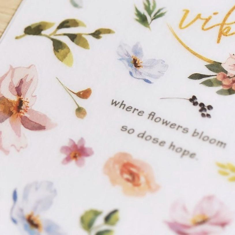 A nice package full of Print-on stickers from the brand MU. The stickers are of high quality and very nice to use in your journal. The shadows used with the stickers make it look lifelike. The stickers look best on a light background. It is convenient to use the stick when rubbing the stickers. This way there are no wrinkles and the sticker adheres nicely to the surface.