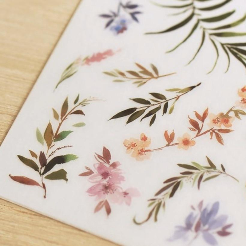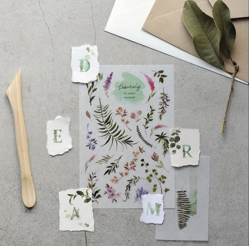 A nice package full of Print-on stickers from the brand MU. The stickers are of high quality and very nice to use in your journal. The shadows used with the stickers make it look lifelike. The stickers look best on a light background. It is convenient to use the stick when rubbing the stickers. This way there are no wrinkles and the sticker adheres nicely to the surface.