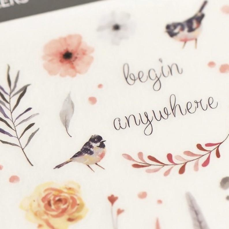 A nice package full of Print-on stickers from the brand MU. The stickers are of high quality and very nice to use in your journal. The shadows used with the stickers make it look lifelike. The stickers look best on a light background. It is convenient to use the stick when rubbing the stickers. This way there are no wrinkles and the sticker adheres nicely to the surface.
