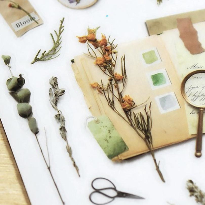 A nice package full of Print-on stickers from the brand MU. The stickers are of high quality and very nice to use in your journal. The shadows used with the stickers make it look lifelike. The stickers look best on a light background. It is convenient to use the stick when rubbing the stickers. This way there are no wrinkles and the sticker adheres nicely to the surface.