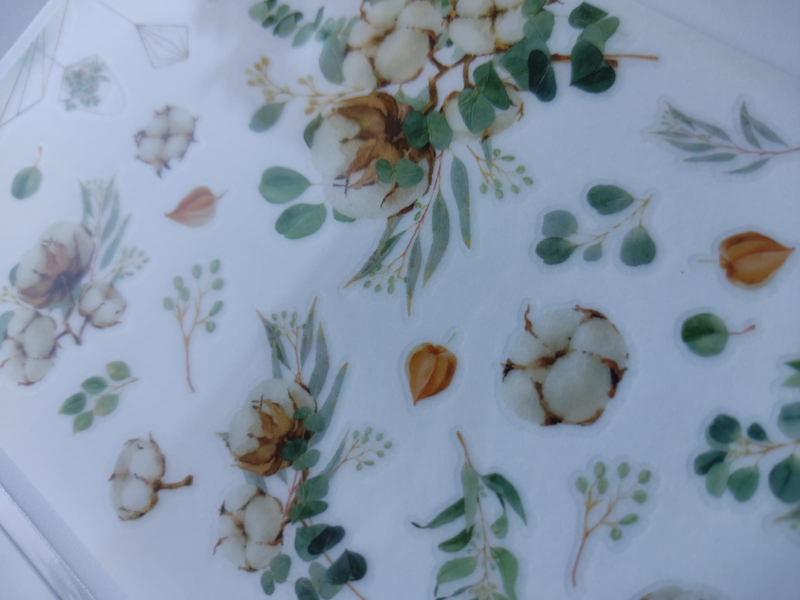 A nice package full of Print-on stickers from the brand MU. The stickers are of high quality and very nice to use in your journal. The shadows used with the stickers make it look lifelike. The stickers look best on a light background. It is convenient to use the stick when rubbing the stickers. This way there are no wrinkles and the sticker adheres nicely to the surface.