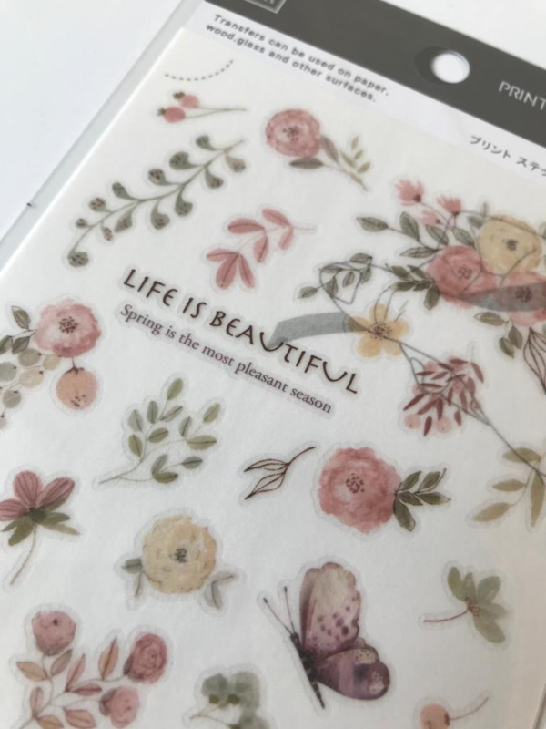 A nice package full of Print-on stickers from the brand MU. The stickers are of high quality and very nice to use in your journal. The shadows used with the stickers make it look lifelike. The stickers look best on a light background. It is convenient to use the stick when rubbing the stickers. This way there are no wrinkles and the sticker adheres nicely to the surface.
