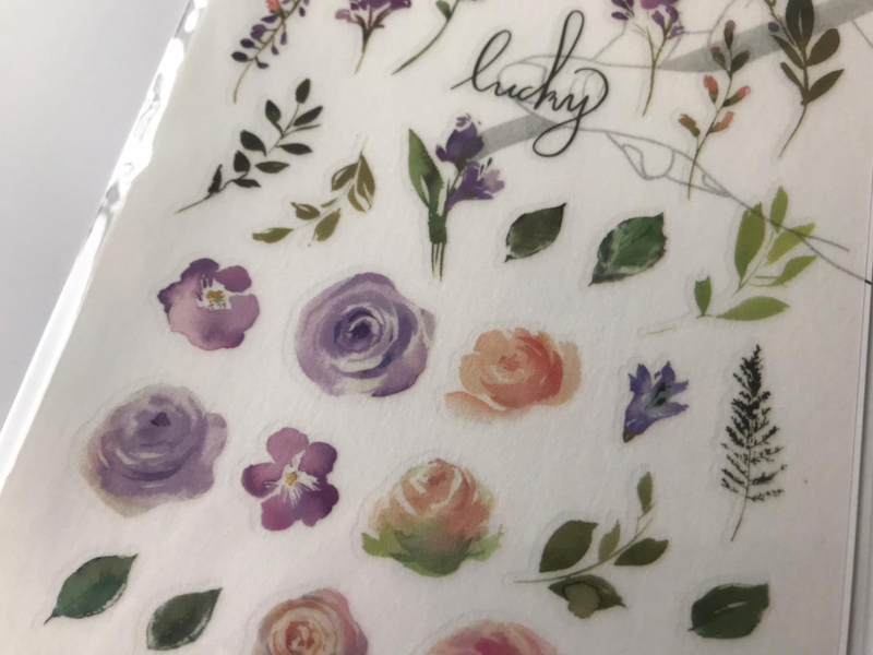 A nice package full of Print-on stickers from the brand MU. The stickers are of high quality and very nice to use in your journal. The shadows used with the stickers make it look lifelike. The stickers look best on a light background. It is convenient to use the stick when rubbing the stickers. This way there are no wrinkles and the sticker adheres nicely to the surface.