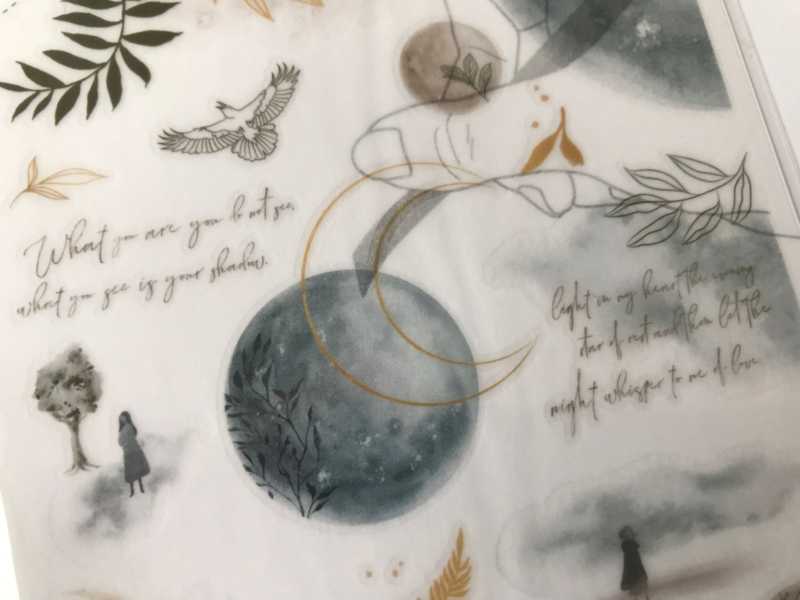 A nice package full of Print-on stickers from the brand MU. The stickers are of high quality and very nice to use in your journal. The shadows used with the stickers make it look lifelike. The stickers look best on a light background. It is convenient to use the stick when rubbing the stickers. This way there are no wrinkles and the sticker adheres nicely to the surface.