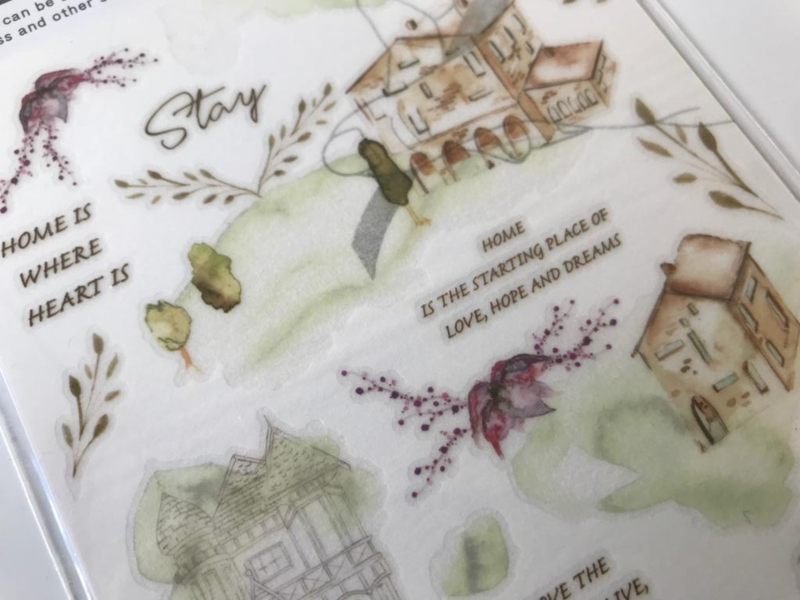 A nice package full of Print-on stickers from the brand MU. The stickers are of high quality and very nice to use in your journal. The shadows used with the stickers make it look lifelike. The stickers look best on a light background. It is convenient to use the stick when rubbing the stickers. This way there are no wrinkles and the sticker adheres nicely to the surface.