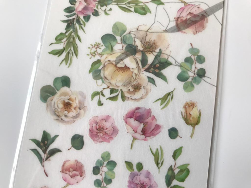 A nice package full of Print-on stickers from the brand MU. The stickers are of high quality and very nice to use in your journal. The shadows used with the stickers make it look lifelike. The stickers look best on a light background. It is convenient to use the stick when rubbing the stickers. This way there are no wrinkles and the sticker adheres nicely to the surface.