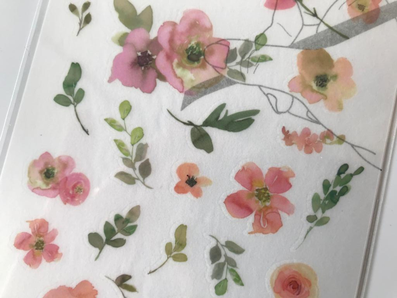 A nice package full of Print-on stickers from the brand MU. The stickers are of high quality and very nice to use in your journal. The shadows used with the stickers make it look lifelike. The stickers look best on a light background. It is convenient to use the stick when rubbing the stickers. This way there are no wrinkles and the sticker adheres nicely to the surface.